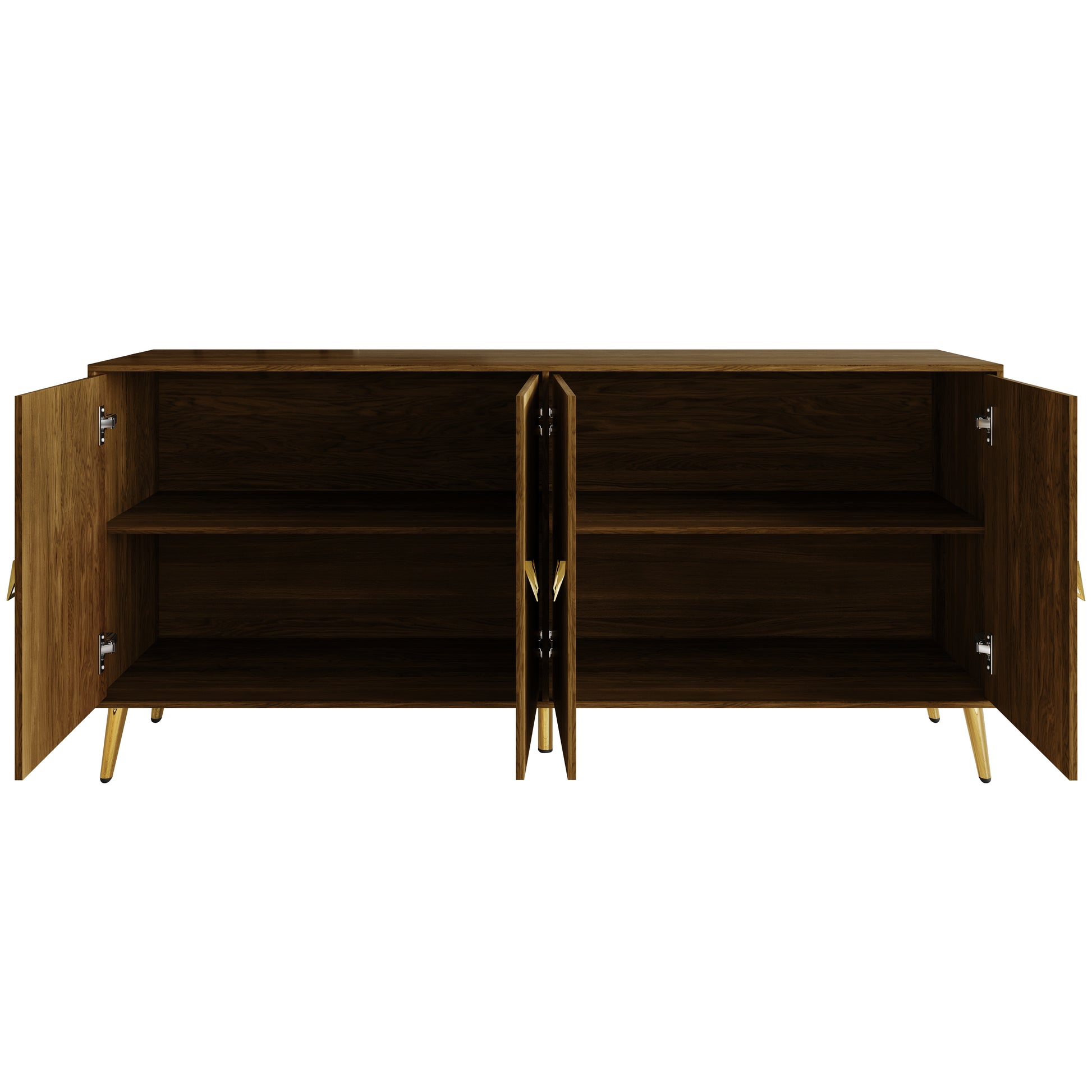 Add a touch of sophistication to your home with this beautifully crafted cabinet. Boasting four spacious open-door sections and four shelves, it offers plenty of storage space for all your essentials. Constructed from solid and engineered wood, it delivers both strength and style. The modern square gold handles, paired with gold metal legs and a center support leg, ensure stability and elegance. Available in Brown, Black, and White finishes, this versatile piece fits effortlessly into any room's décor. Assembly is a breeze with clear instructions, and it ships conveniently in one box